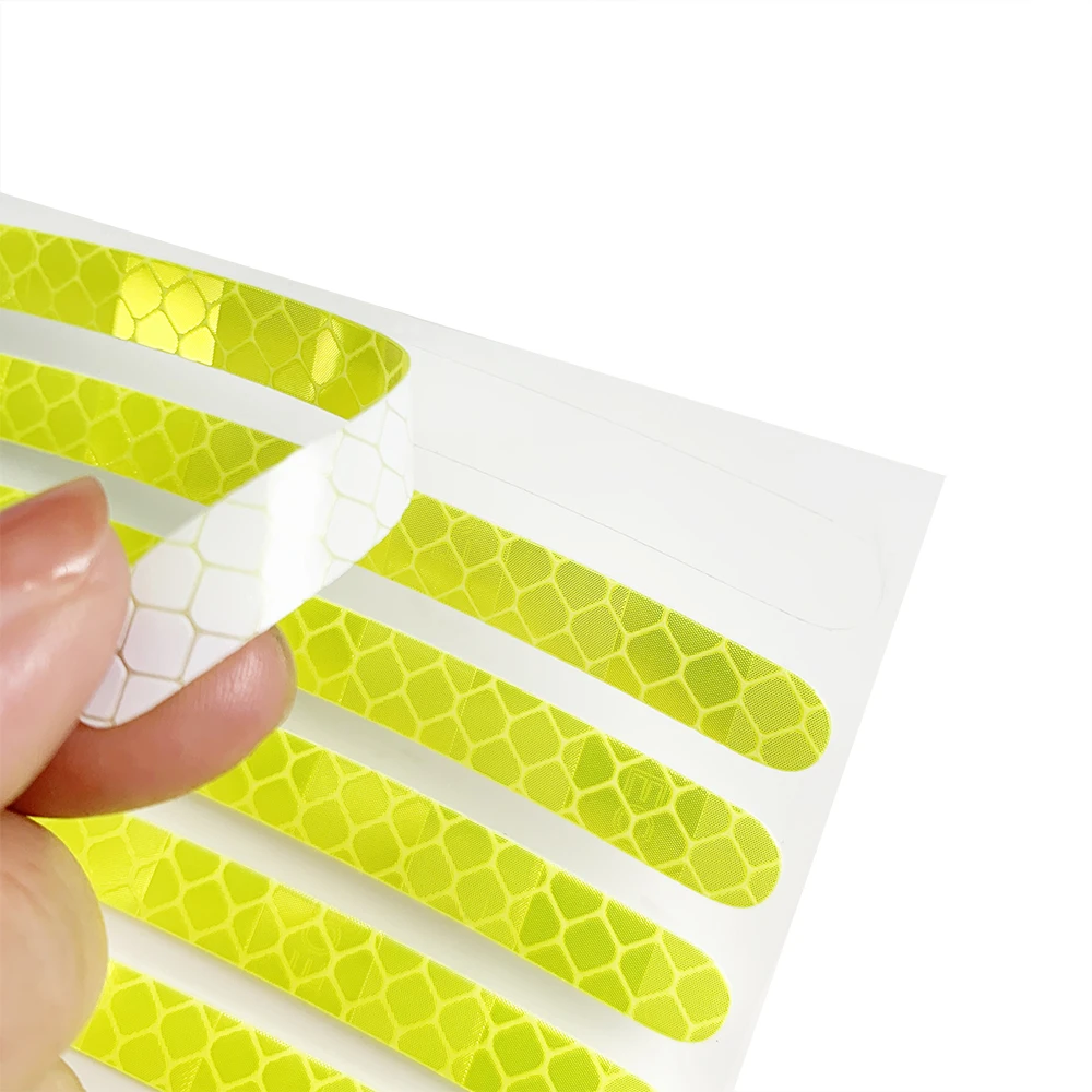 4. Easy installation: reflective stickers were cut into 20 pieces and made into curved pieces, which fit perfectly with round pieces. The sticker has its own adhesive backing, which can be easily torn off, attached directly to the rim of a car, motorcycle or bicycle;