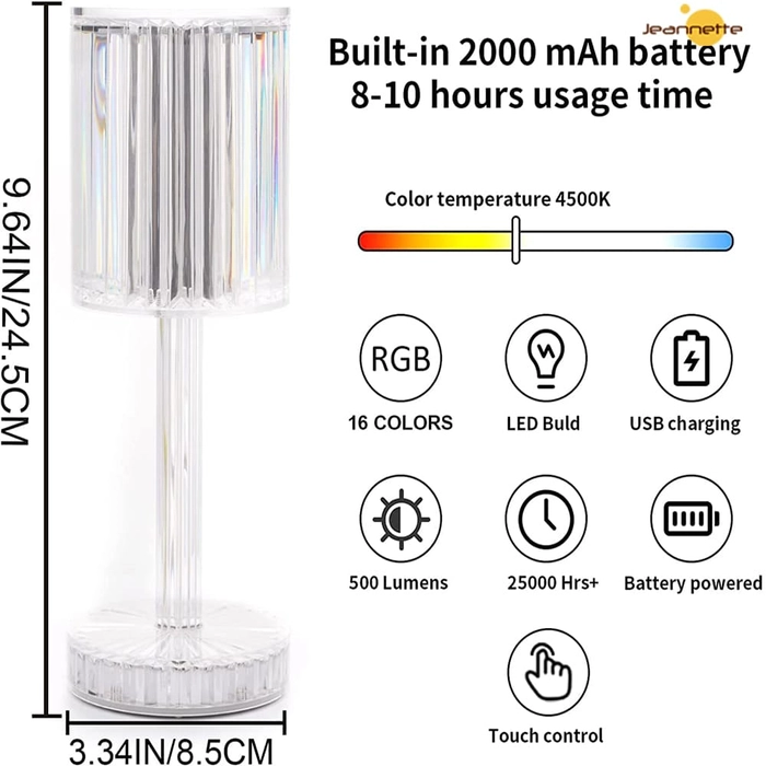 Crystal Diamond Table Lamp Touch Control RGB Color Light Bedroom Romantic