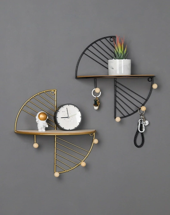 Modern simple and creative half circle rectangular wall shelf multi-function hook home bedroom wall decoration storage rack